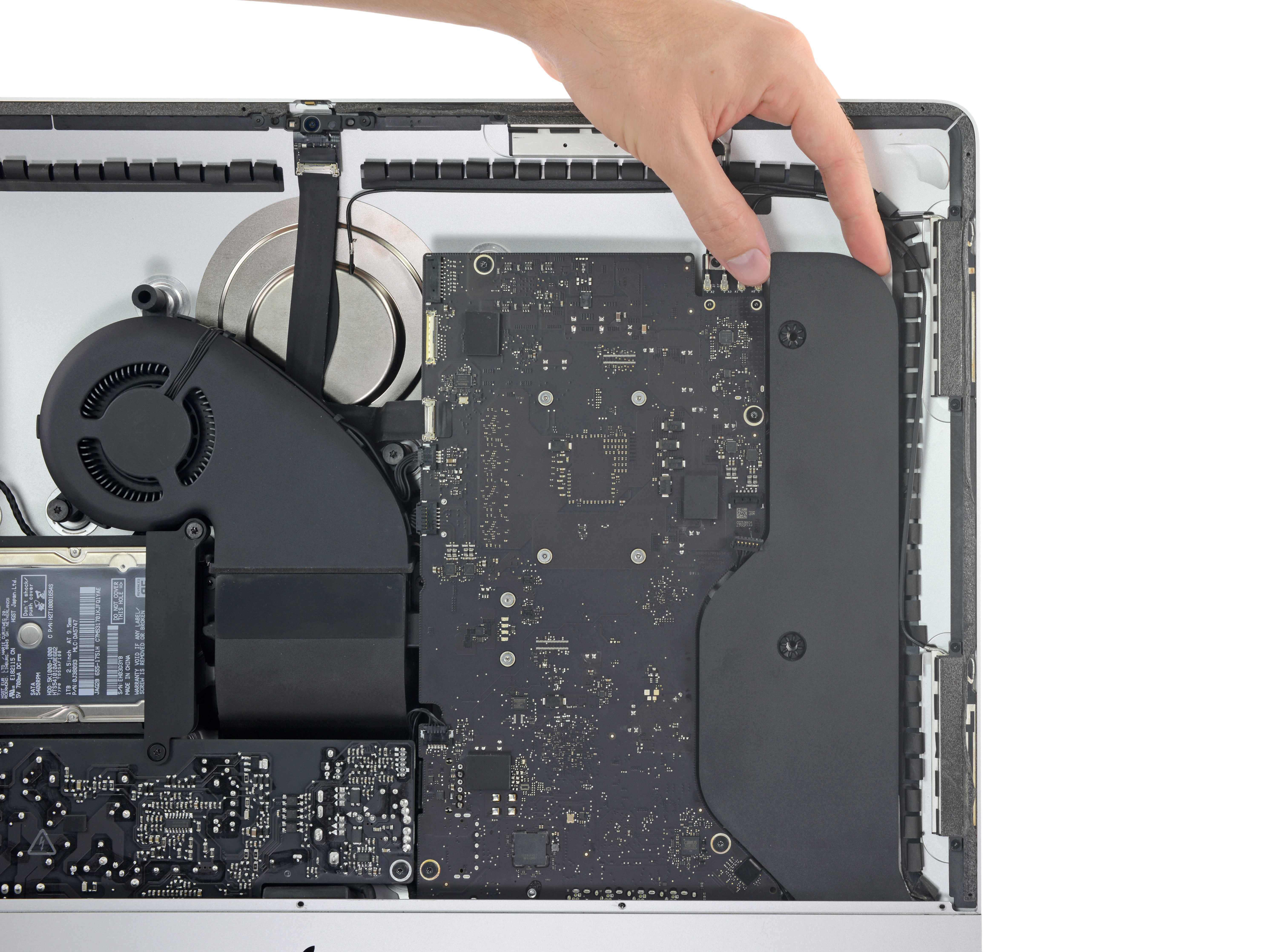 Остальные части этого iMac разбираются практически так же, как мы ожидаем, и мы без лишних хлопот извлекаем блок питания, жесткий диск и вентилятор.