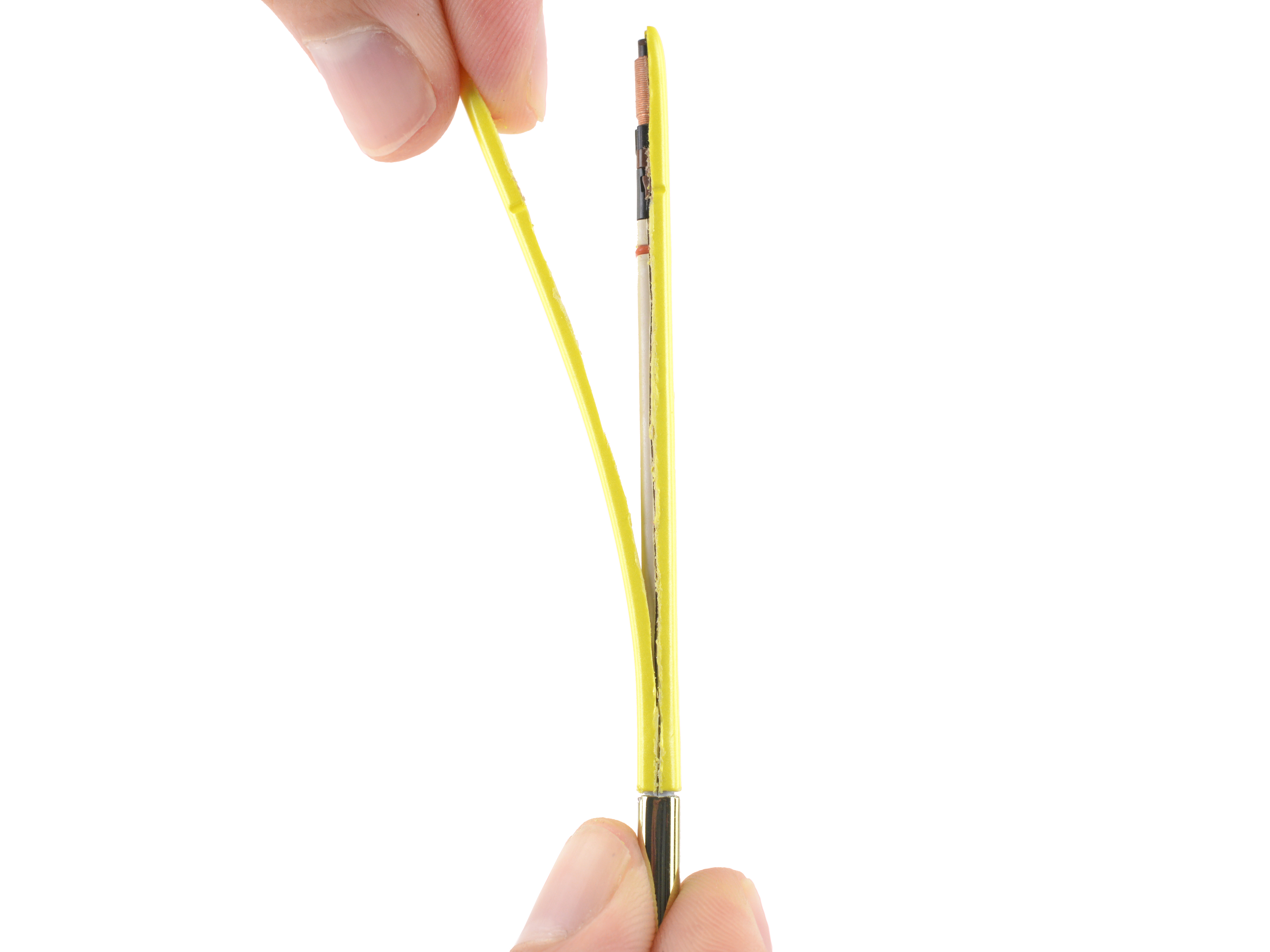 Пришло время извлечь перо S Pen. Мы не смогли найти неразрушающий способ вскрыть его, поэтому пустили в ход тяжелое оружие - ультразвуковой резак!